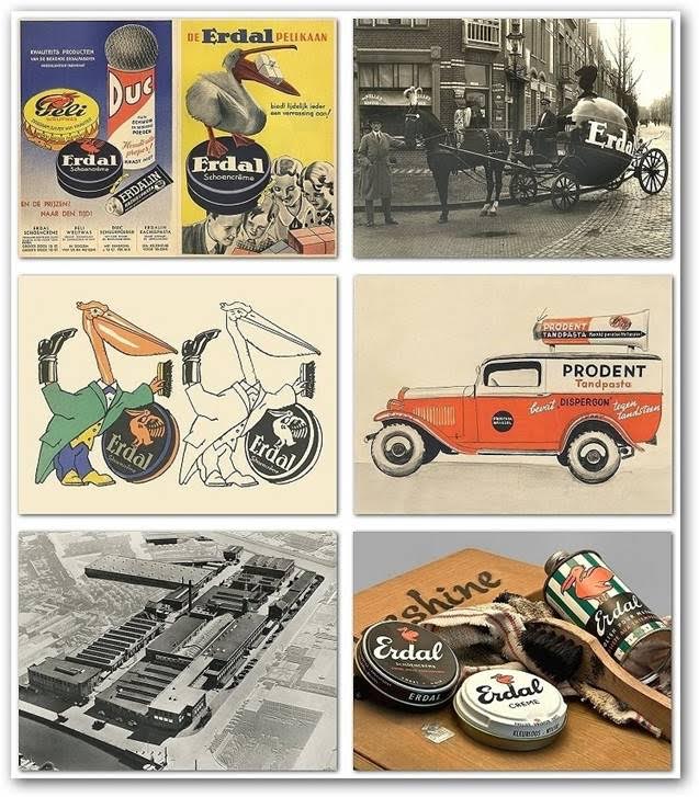 De NV. Maatschappij voor Waschverwerking Erdal is opgericht in Amsterdam en verhuisde in 1936 naar Amersfoort aan de Eem. Erdal is herkenbaar aan het beeldmerk met de pelikaan. Meer over de fabriek staat op onze website onder de link Prodent.