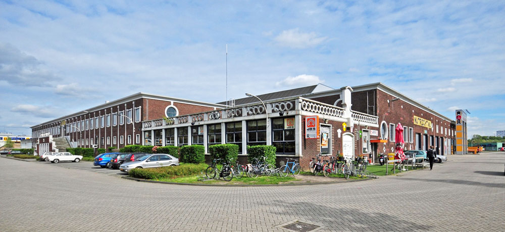 voormalig distributiecentrum voor Verkade, architect P. van der Wart. 1932. Karakteristieke bedrijfsruimte met poort naar achterterrein, jaren dertig architectuur.
