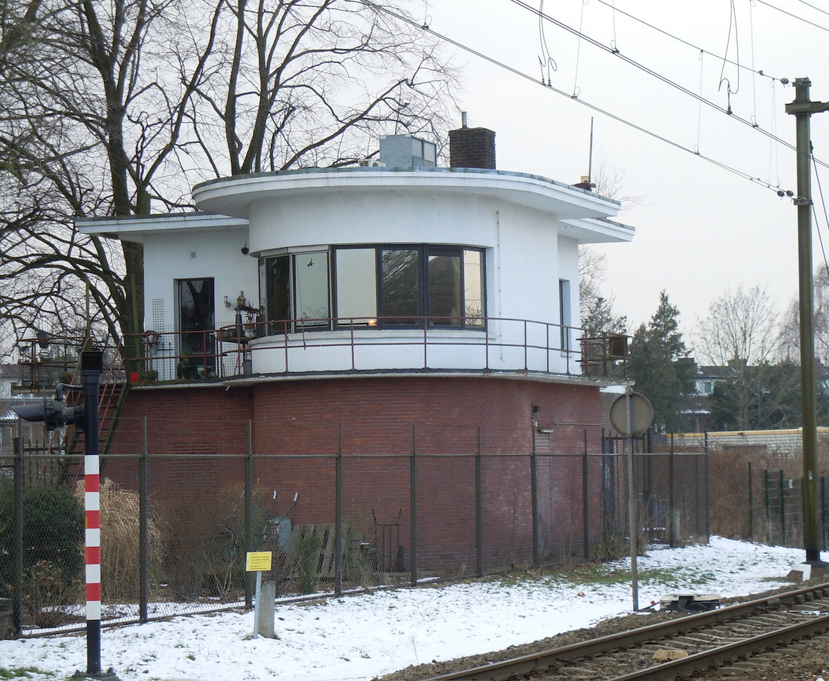 voormalig seinhuis NS, in stijl van Van Ravesteyn (geen ontwerp van Van Ravesteyn), 1950, gelegen langs spoorlijn, vlak voor Blauwkapel.