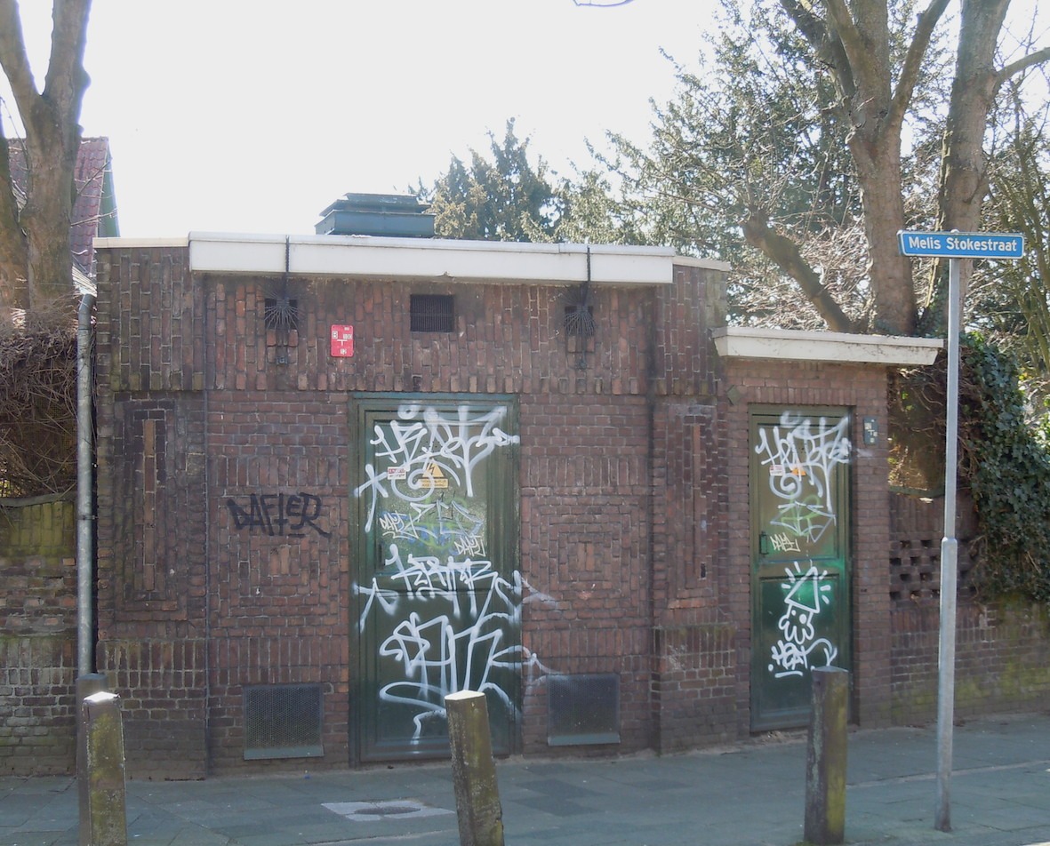 transformatorhuisje (PEGUS) in Amsterdamse Schoolstijl. In één ontwerp met woningbouwcomplex De Tuinwijk, architect A. Kool, 1925.