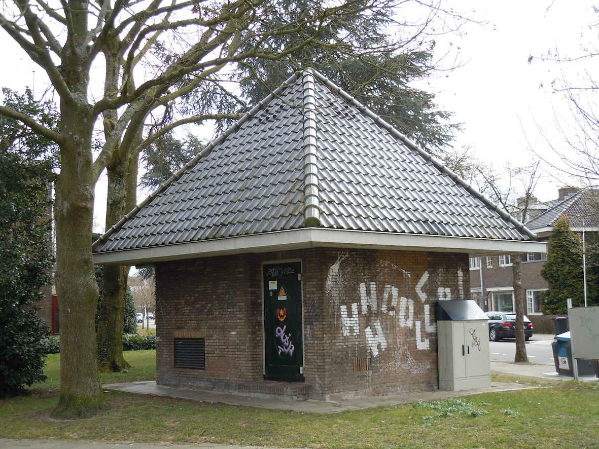 voormalig transformatorhuisje (PUEM), ca 1935, Nieuwe Zakelijkheid. In één ontwerp met woningbouw Tuindorp, jaren dertig.