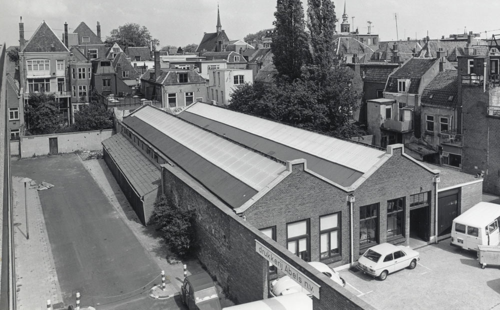 Utrecht – Drukkerij Abels (kantoordrukwerk) – de bedrijfshallen in de Strosteeg
