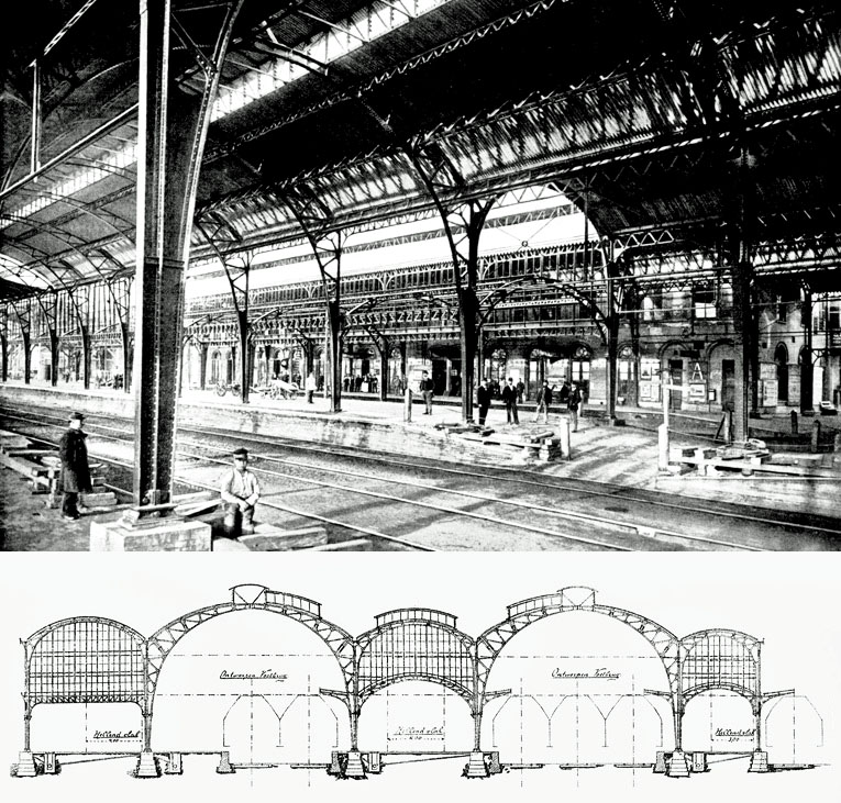 Het Centraal Station in Utrecht werd in 1894 volledig vernieuwd. Naar een ontwerp van ir. G.W. van Heukelom, die later De Inktpot ontwierp, kreeg het station vijf spoorkappen. Voor de looproute tussen Hoog Catharijne en de Jaarbeurs zaten de kappen in de weg. De grote kappen verdwenen bij de bouw van Hoog Catharijne dat in 1973 werd geopend. Niet alle kappen moesten daarvoor wijken. Maar bij de meest recente vernieuwing van het Centraal Station verdwenen in 2013 de laatste historische perronkappen.