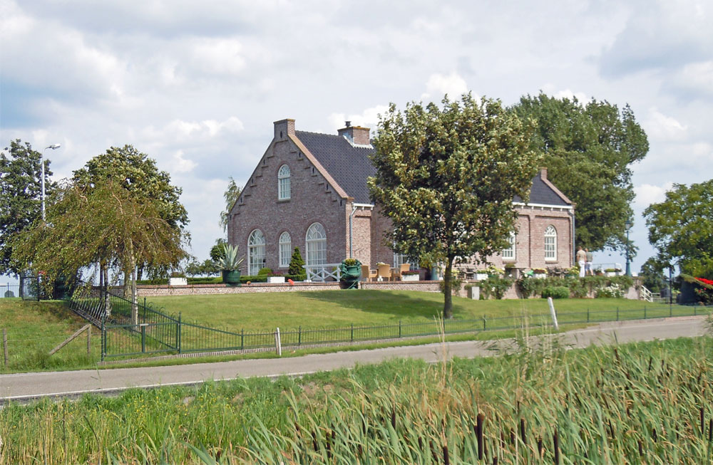 Het grote gebouw van het stoomgemaal en de kleinere machinistenwoning, nu een riant woonhuis