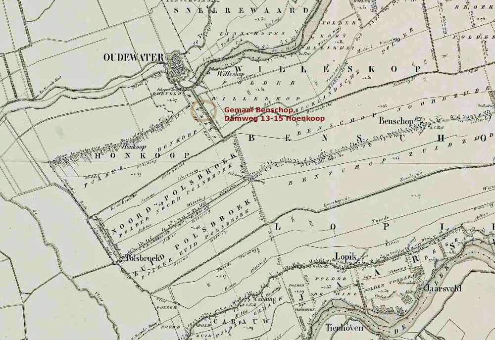 Kaart van de polders Hoenkoop en Benschop uit 1850