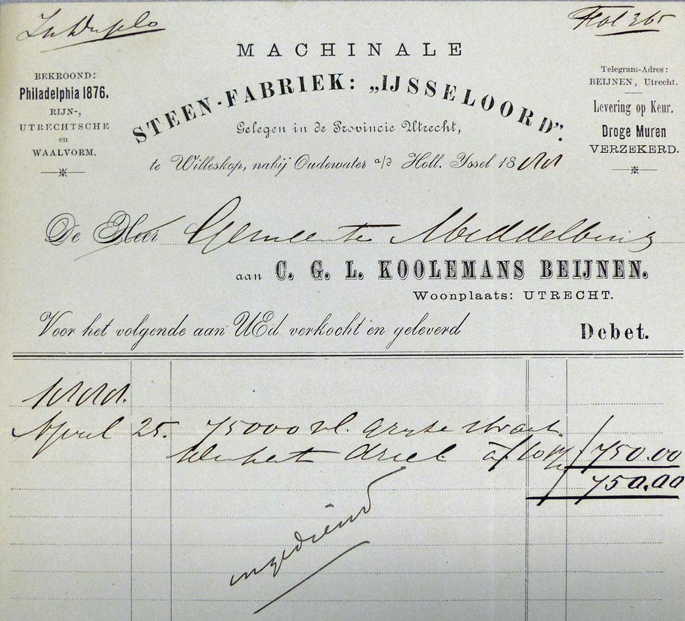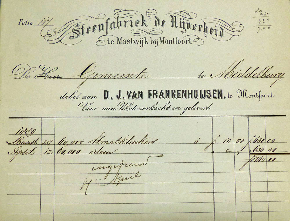 Dat Koolemans Beijnen en Frankenhuijsen met hun beider fabrieken stevige concurrenten waren, bewijzen onderstaande facturen uit 1888 resp. 1889. In deze opeenvolgende jaren leverden ze rijnsteen straatklinkers aan de gemeente Middelburg.