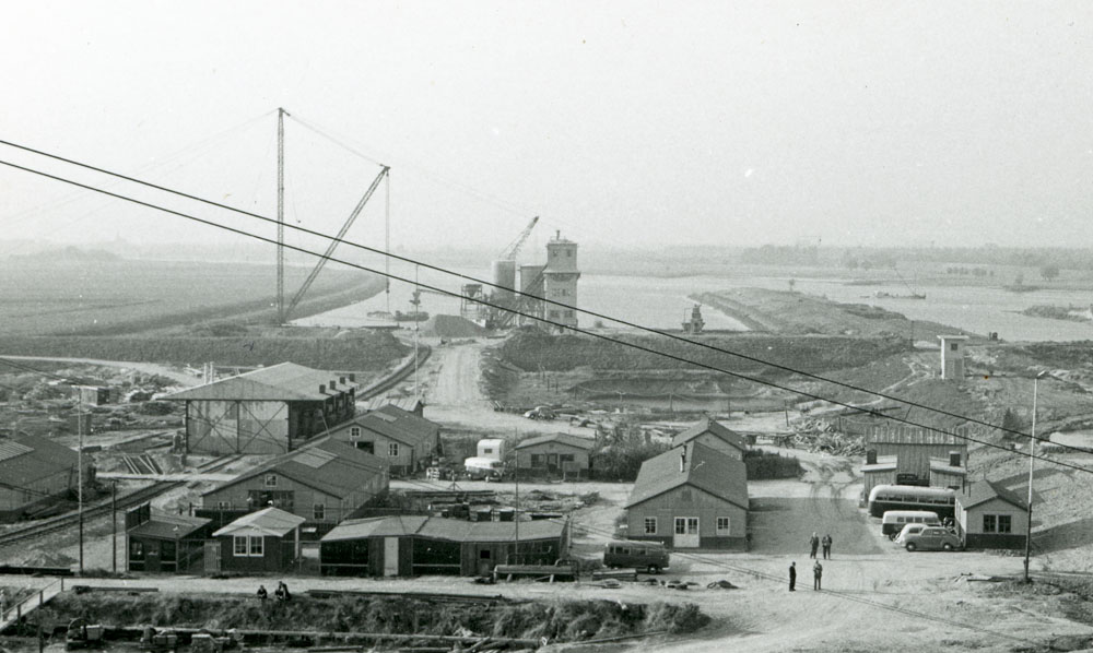 In de Lek werd een bouwput aangelegd voor de bouw van de stuw – beeldbank RWS